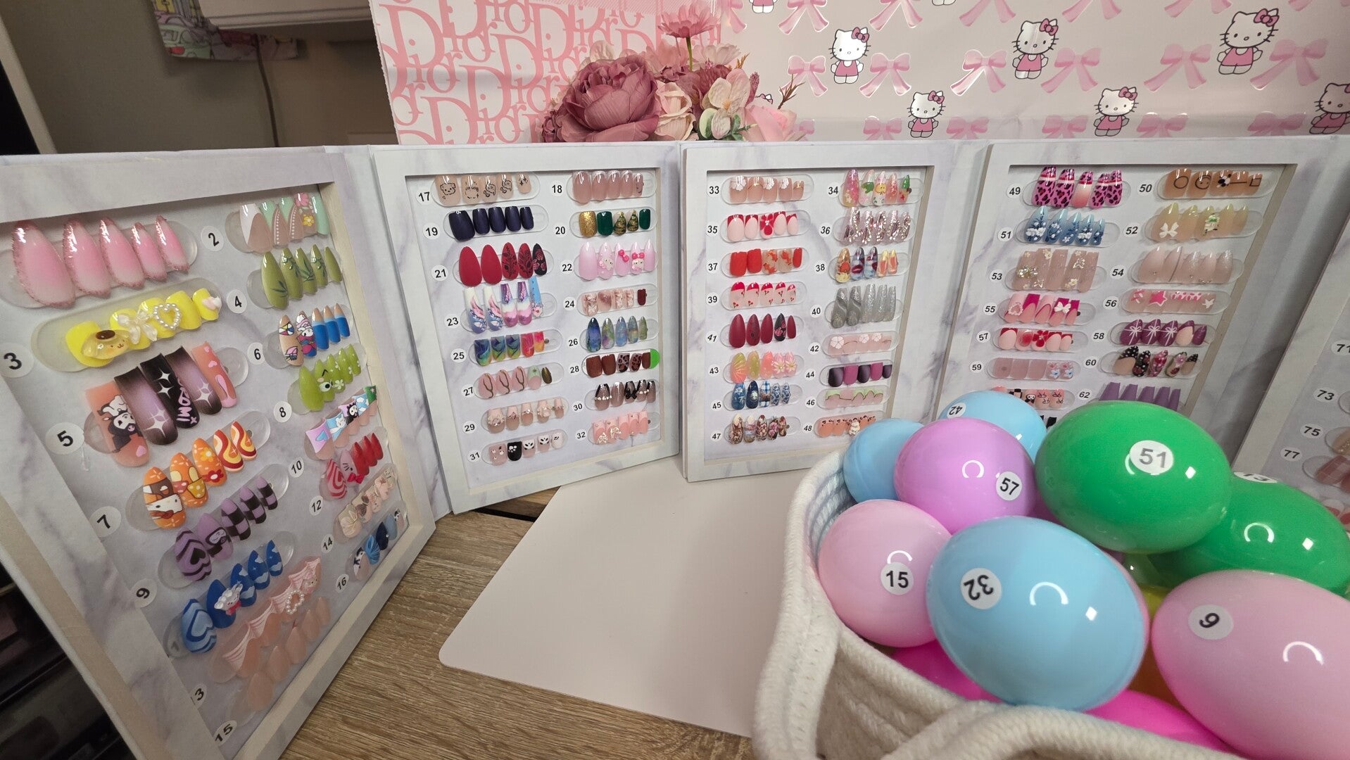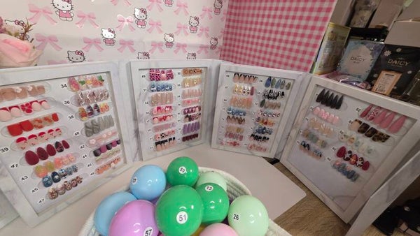 The ultimate treat of lovely press-on nails and fun, fashionable, and functional gifts. Choose sanrio, Proverbs 31 Woman, or Exquisite lucky ball game. All start at the same low, low price (for a limited time).